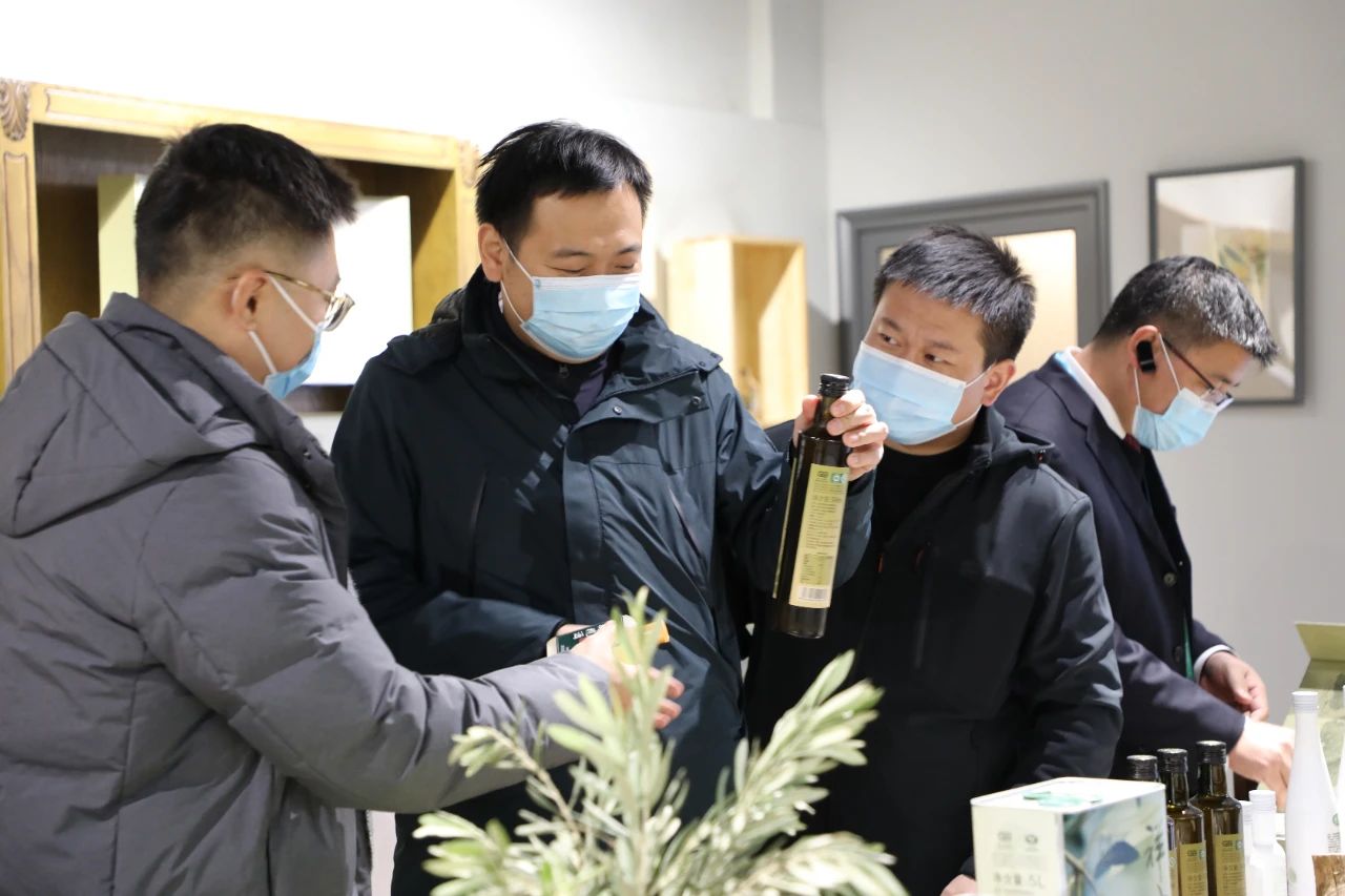 在產(chǎn)品品鑒區(qū),劉玉紅董事長邀請理事長及各位領(lǐng)導(dǎo)品鑒了2020年祥宇特級初榨橄欖油、