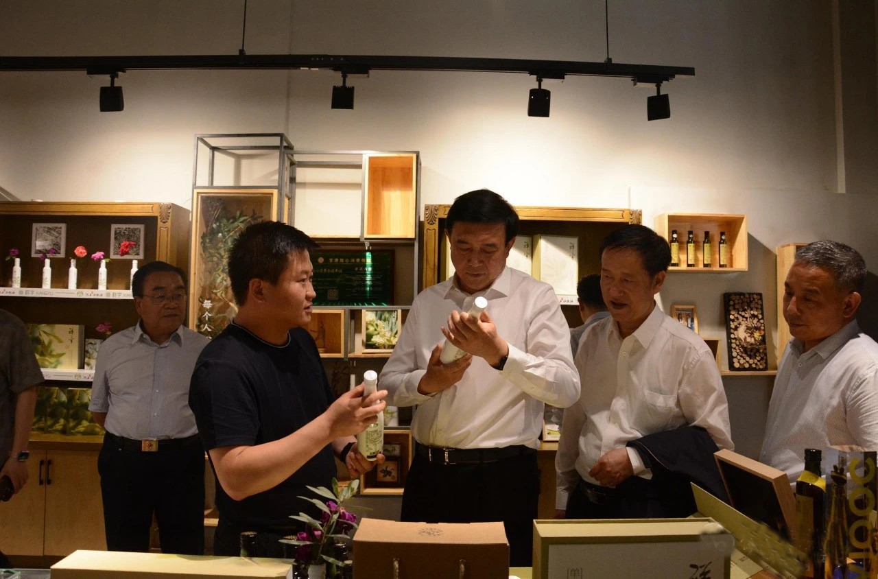 在產(chǎn)品展示區(qū),趙主席品鑒了特級(jí)初榨橄欖油、橄欖菜、橄欖果、橄欖拌飯醬、橄欖保健品等系列產(chǎn)品,
